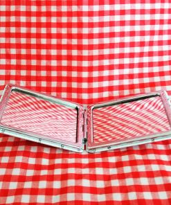 Espejo de Cartera con Forma Rectangular, plegable tipo almeja, 1 espejo normal, 1 con aumento con motivo de diferentes caritas de gato, 4 modelos diferentes.