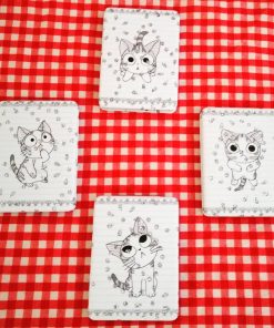 Espejo de Cartera con Forma Rectangular, plegable tipo almeja, 1 espejo normal, 1 con aumento con motivo de diferentes caritas de gato, 4 modelos diferentes.